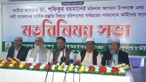 রোববার (১৯ জানুয়ারি) বেলা সাড়ে ১১টায় বরিশাল নগরের সদর রোডস্থ একটি রেস্তোরাঁয় আয়োজিত এক মতবিনিময় সভায় তিনি এসব কথা বলেন। জামায়াত আমির ডা. শফিকুর রহমানের বরিশালে আগমন উপলক্ষে এবং কর্মী সম্মেলনে সার্বিক প্রস্তুতি বিষয়ে সর্বস্তরের গণমাধ্যম কর্মীদের সঙ্গে এ অনুষ্ঠানের আয়োজন করা হয়।