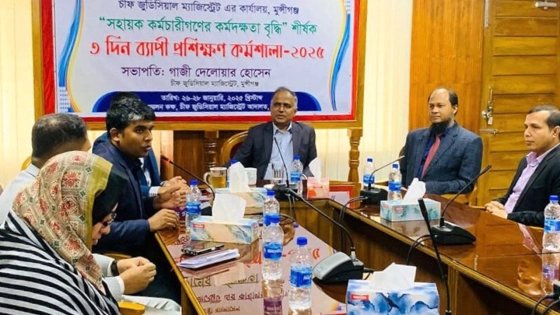 মুন্সীগঞ্জ চিফ জুডিশিয়াল ম্যাজিস্ট্রেট আদালতে সহায়ক কর্মচারীদের কর্মদক্ষতা বৃদ্ধি শীর্ষক তিন দিনের প্রশিক্ষণ শেষে সমাপনী অনুষ্ঠান সম্পন্ন হয়েছে।
