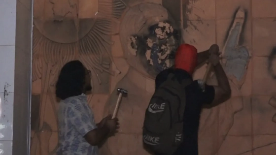চট্টগ্রাম মেডিকেল কলেজে গিয়ে দেখা যায়, পুরোনো একাডেমিক ভবনের সামনে একটু ম্যুরাল ভাঙছেন ২০-২৫ জন। তাদের কয়েকজনের হাতে হাতুড়ি ছিল। অন্যদের হাতে পাথর।