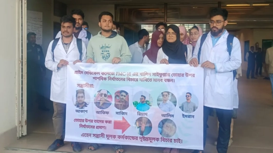 রংপুরের প্রাইম মেডিকেল কলেজে র্যাগিংয়ের নামে ১৬তম ব্যাচের শিক্ষার্থী খালিদ সাইফুল্লাহ তোহাকে নির্মমভাবে নির্যাতনের ঘটনায় জড়িতদের দৃষ্টান্তমূলক শাস্তির দাবিতে মানববন্ধন করেছে শিক্ষার্থীরা।