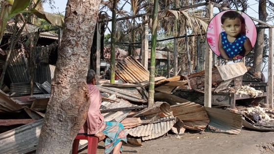 এছাড়াও আগুনে বাড়ির ৪টি ঘর ও একটি রান্না ঘর পুড়ে ভস্মীভূত হয়েছে। নিহত শিশু আইরিনের বাবার নাম আল আমিন।
