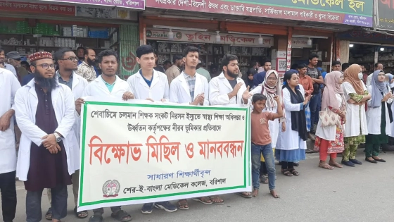 বৃহস্পতিবার (২০ ফেব্রুয়ারি) সকাল থেকে দুপুর পর্যন্ত বরিশাল শের-ই-বাংলা চিকিৎসা মহাবিদ্যালয় (শেবাচিম) হাসপাতালের সামনের সড়ক অবরোধ এবং শেবামেক ক্যাম্পাসে প্রজ্ঞাপন পোড়ানোর কর্মসূচি পালন করা হয়।
