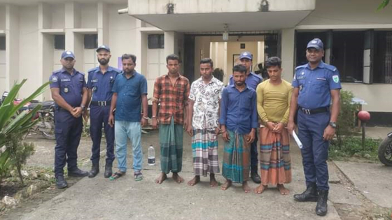 গ্রেপ্তার হওয়া মোশাহিদ হোসেন রানু উপজেলার বাদাঘাট ইউনিয়ন পরিষদের (ইউপি) ৬ নম্বর ওয়ার্ডের সদস্য। অন্যরা হলেন- মো. আমিন উদ্দিন (২৩), মো. সায়েম আলী (২২), মো. দেলোয়ার হোসেন (২৫) ও জয়ন্ত দাশ (২৩)।