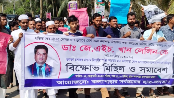 অবহেলা ও ভুল চিকিৎসায় একাধিক রোগীর মৃত্যুর অভিযোগে পটুয়াখালীর কলাপাড়া উপজেলা স্বাস্থ্য কমপ্লেক্সের চিকিৎসক ডা. লেলিনের অপসারণ ও শাস্তির দাবিতে বিক্ষোভ ও প্রতিবাদ সমাবেশ অনুষ্ঠিত হয়েছে।