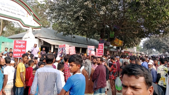 রংপুরের পীরগাছায় হিজবুত তাওহীদের কর্মীদের সঙ্গে এলাকাবাসীর সংঘর্ষের ঘটনায় সংগঠনটিকে নিষিদ্ধের দাবিতে বিক্ষোভ ও মানববন্ধন করেছে স্থানীয়রা। বুধবার (২৬ ফেব্রুয়ারি) দুপুর ২টার দিকে উপজেলার পারুল ইউনিয়নের নাগদাহ সিদামবাজার থেকে স্থানীয়রা বিক্ষোভ মিছিল বের হরে দেউতি বাজারে এসে পীরগাছা-রংপুর মহাসড়ক অবরোধ করে। প্রায় ২০ মিনিট ধরে চলা এই অবরোধ চলাকালীন বিক্ষুব্ধ জনতা হিজবুত তাওহীদ নিষিদ্ধের দাবিতে নানা স্লোগান দেয়। পরে অবরোধ তুলে নিয়ে মানববন্ধন থেকে সংগঠনটিকে নিষিদ্ধ করতে ৪৮ ঘণ্টার আলটিমেটাম দেওয়া হয়।