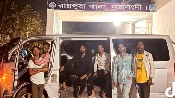 নরসিংদীর রায়পুরা থানার মূল ফটকের সামনে ফিল্মি কায়দায় মাফিয়া গ্যাং স্টাইলের কিছু যুবকের বেপরোয়া আচরণের ছবি সামাজিক যোগাযোগমাধ্যমে ভাইরাল হয়েছে। ছবিগুলোতে দেখা যায়, কয়েকজন যুবক রাতে একটি মাইক্রোবাসের সামনে ও ছাদে উঠে বিভিন্ন অঙ্গভঙ্গি করে ছবি তুলছে। তাদের মধ্যে কেউ কেউ মাইক্রোবাসের দরজা খুলে, কেউবা ছাঁদে দাঁড়িয়ে, আবার কেউ গুণ্ডা—বখাটে ধাঁচের ভঙ্গিতে পোজ দিচ্ছে।