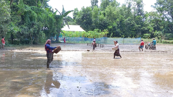শনিবার (১৯ আগস্ট) দুপুরে উপজেলার বিভিন্ন মাঠ ঘুরে দেখা গেছে, উপজেলার মাঠজুড়ে চলছে বীজতলার জন্য জমি তৈরি ও বীজ রোপণের কাজ। বর্তমানে এখানকার অধিকাংশ কৃষকরাই দেশীয় জাতের বদলে উন্নত উচ্চ ফলনশীল জাতের ধানের বীজ বপন করছেন।