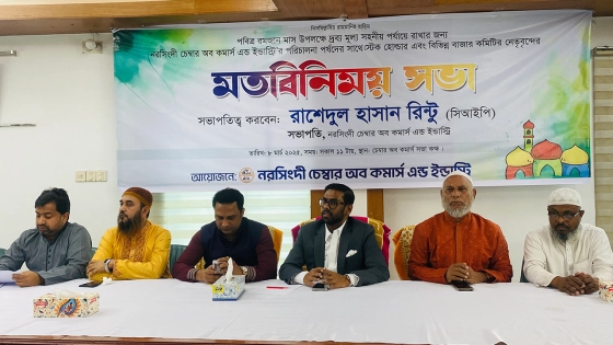 পবিত্র রমজানে দ্রব্যমূল্য সহনীয় পর্যায়ে রাখার জন্য নরসিংদী চেম্বার অব কমার্স এন্ড ইন্ডাস্ট্রির পরিচালনা পর্ষদের সঙ্গে স্টেকহোল্ডার এবং বিভিন্ন বাজার কমিটির নেতাদের মতবিনিময় সভা অনুষ্ঠিত হয়েছে।