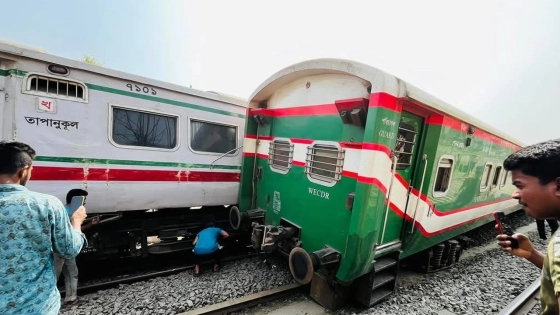 রাজশাহী রেলওয়ে স্টেশন এলাকায় ভুল সিগন্যালের কারণে ধূমকেতু এক্সপ্রেস ও বাংলাবান্ধা এক্সপ্রেসের মধ্যে সংঘর্ষের ঘটনা ঘটেছে। তবে ট্রেন দুটি যাত্রীবিহীন থাকায় হতাহতের ঘটনা ঘটেনি।