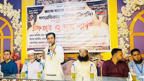 ইফতার মাহফিলে সভাপতিত্ব করেন গণঅধিকার পরিষদ গোপালগঞ্জ জেলার সভাপতি আল আমিন সরদার। সঞ্চালনা করেন গোপালগঞ্জ জেলা ছাত্র অধিকার পরিষদের সাধারণ মুজাহিদ শেখ।