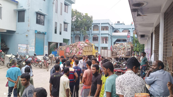 বুধবার (২৩ আগস্ট) সকালে শহরের বিভিন্ন ডাস্টবিন থেকে ময়লা সংগ্রহ করে সেগুলো নিয়ে পৌরসভার মধ্যে সকাল ১০টা থেকে দুপুর সাড়ে ১২টা পর্যন্ত অবস্থান নেয় পরিচ্ছন্নতা কর্মীরা।
