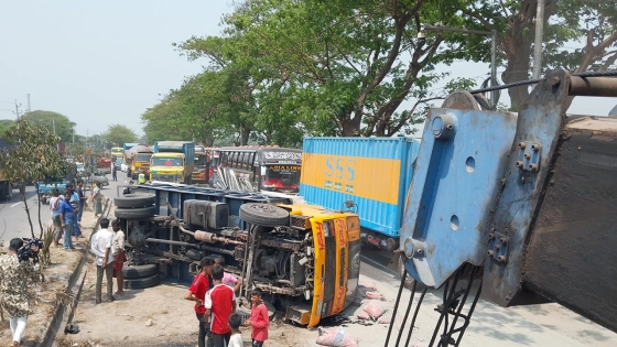 ঈদযাত্রায় স্বস্তির ঢাকা-চট্টগ্রাম মহাসড়কের কুমিল্লার ইলিয়টগঞ্জ এলাকায় সিমেন্টবোঝাই ট্রাক উল্টে মহাসড়কের দুপাশে অন্তত ৮-১০ কিলোমিটার এলাকায় যানজটের সৃষ্টি হয়েছে। আটকা পড়া যানবাহনে ভোগান্তিতে পড়েছে ঘরমুখো যাত্রীরা।