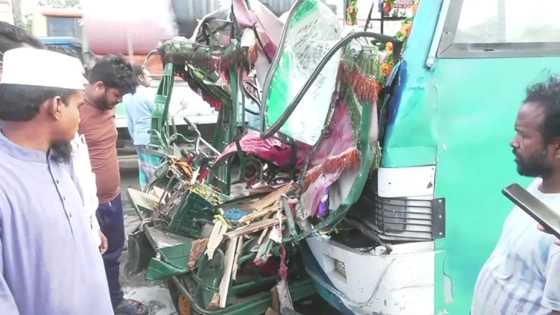 তিনি বলেন, রোববার সকাল সাড়ে ৭টার দিকে বেপরোয়া গতির একটি তাকওয়া পরিবহনের যাত্রীবাহী বাস একটি ব্যাটারিচালিত অটোরিকশাকে চাপা দেয়। এতে অটোরিকশাটি দুমড়েমুচড়ে যায়। এ ঘটনায় অটোরিকশার এক যাত্রী ঘটনাস্থলেই নিহত হন এবং অপর দুজন গুরুতর আহত হন। খবর পেয়ে পুলিশ ও স্থানীয়রা আহতদের উদ্ধার করে হাসপাতালে ভর্তি করে। মরদেহ উদ্ধার করে ময়নাতদন্তের জন্য শহীদ তাজউদ্দীন আহমদ মেডিকেল কলেজ হাসপাতালের মর্গে পাঠিয়েছে।