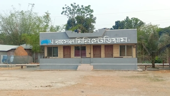 বুধবার (৯ এপ্রিল) দুপুরে সরেজমিনে দেবীগঞ্জ পৌরসভার কলেজপাড়া এলাকায় অবস্থিত উপজেলা মিনি স্টেডিয়ামে গিয়ে দেখা যায়, স্টেডিয়ামের মূল ভবনের গায়ে এখনও ‘শেখ রাসেল মিনি স্টেডিয়াম’ নামটি রয়ে গেছে।