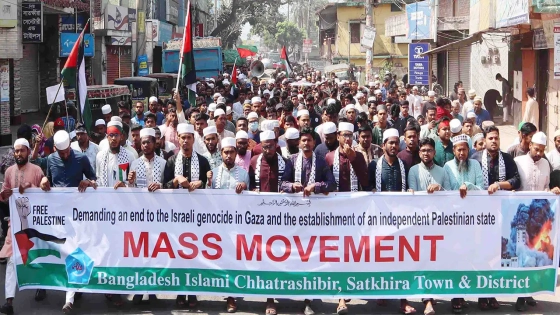 মিছিলের মাধ্যমে গাজায় গণহত্যা বন্ধে অন্তর্বর্তী সরকারকে ইসরাইলের ওপর অব্যাহত চাপ সৃষ্টির আহ্বান জানান ছাত্রশিবির নেতারা।