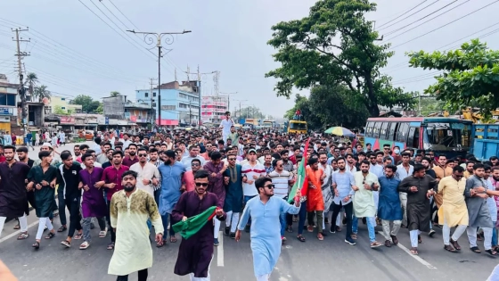 অন্যদিকে ছাত্রদলের দাবি, বৃহস্পতিবার সকালে আলহাজ মোস্তফা হাকিম ডিগ্রি কলেজে এডহক কমিটির বৈঠককে কেন্দ্র করে হাতাহাতির ঘটনায় ছাত্রদলকে দোষারোপ করে বৈষম্যবিরোধী সংগঠন ও ছাত্রলীগের সন্ত্রাসীরা হামলা করে ছাত্রদলকর্মী রায়াতসহ কয়েকজনকে আহত করে। রাতে উভয়পক্ষের ছাত্র প্রতিনিধি বসে সমাধান করার পরও বৈষম্যবিরোধী ছাত্র সংগঠনের বিক্ষোভ মিছিল করেছে। এই মিছিলের প্রতিবাদে ছাত্রদলের বিক্ষোভ মিছিল।