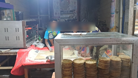 সরেজমিনে দেখা যায়, আওয়ামী লীগের কার্যালয়ের সামনের অংশে দোকান বসিয়ে বাকরখানি বানানো ও বিক্রি করা হচ্ছে। দুজন কর্মচারী বাকরখানি বানাচ্ছে। অপরজন বাকরখানি বিক্রি করছেন।