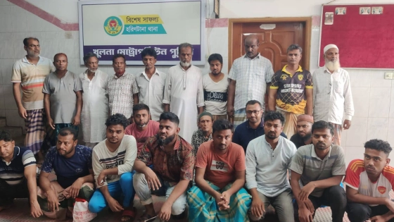 খুলনা মেট্রোপলিটন পুলিশের অতিরিক্ত উপকমিশনার (মিডিয়া অ্যান্ড সিপি) মোহা. আহসান হাবীব বলেন, নগরীর হরিণটানা থানায় ২২ জনকে, খালিশপুর থানায় ৭ জনকে এবং আড়ংঘাটা থানায় ১০ জনকে গ্রেপ্তার করা হয়েছে।