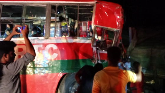 প্রত্যক্ষদর্শী জানান, ঠাকুরগাঁও থেকে দিনাজপুরগামী একটি বালুবোঝাই ট্রাকের সামনের চাকা হঠাৎ পাংচার হয়ে যায়। এ সময় ট্রাকচালক নিয়ন্ত্রণ হারিয়ে ফেলেন এবং বিপরীত দিক থেকে আসা রংপুর-ঠাকুরগাঁও রুটের বিআরটিসি বাসের সঙ্গে মুখোমুখি সংঘর্ষ হয়। এতে বাসের চালকসহ অন্তত ১৫ জন যাত্রী আহত হন। তাদের মধ্যে দুজনের অবস্থা গুরুতর।