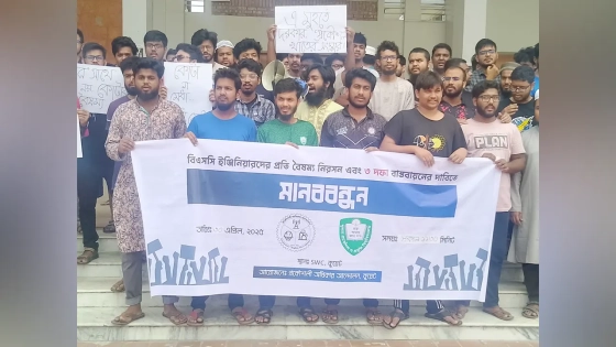 মানববন্ধনে বক্তারা বলেন, দেশের ইঞ্জিনিয়ারিং খাতে নবম এবং দশম গ্রেডে চাকরির ক্ষেত্রে একটি বৈষম্য বিরাজ করছে। এক্ষেত্রে আমরা যারা বিএসসি প্রকৌশলী শিক্ষার্থী এবং বিএসসি ডিগ্রিধারীদের তিন দফা দাবি আদায়ে একটি কর্মসূচি প্রদান করেছি।