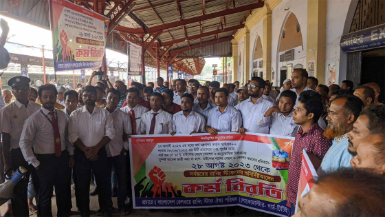 অন্যদিকে রেলওয়েতে কর্মরত অস্থায়ী শ্রমিকদের (টিএলআর) স্থায়ীকরণের জন্য আগামী ২৮ আগস্টের মধ্যে কার্যকর উদ্যোগ নেওয়া না হলে ২৯ আগস্ট থেকে কর্মবিরতির ঘোষণা দিয়েছেন রেলওয়ের অস্থায়ী শ্রমিকরা। কেন্দ্রীয় শ্রমিক প্রতিনিধি মোহাম্মদ হোসেন বলেন, আমরা সরকারি গেজেট বাস্তবায়নের মাধ্যমে চাকরী স্থায়ীকরণ চাই। নির্ধারিত সময়ের মধ্যে স্থায়ীকরণের কার্যকর পদক্ষেপ নেওয়া না হলে ২৯ আগস্ট থেকে আমরা কর্মবিরতি পালন করবো।