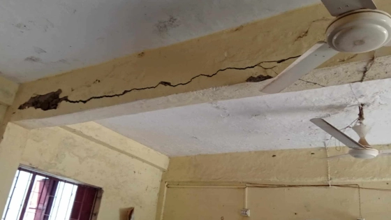নেত্রকোনা জেলার কেন্দুয়া উপজেলার কান্দিউড়া ইউনিয়নের তারাকান্দিয়া বাজুপাড়া সরকারি প্রাথমিক বিদ্যালয়সহ ৯ ঝুঁকিপূর্ণ বিদ্যালয় ভবনে চলছে পাঠদান। ভবনগুলোর ছাদে ফাটল। ধসে পড়ছে পলেস্তারা। বেরিয়ে পড়েছে ভেতরের রড ও ইট। এ ভবনের প্রতিটি শ্রেণিকক্ষই ঝুঁকিপূর্ণ হওয়ায় শিক্ষক-শিক্ষার্থী ও অভিভাবকরা রয়েছেন আতঙ্কে।
