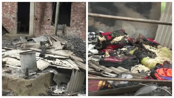স্মৃতি বিশ্বাস বলেন, তিন দিন ধরে আমার বাড়িতে পূজা চলছিল। বিভিন্ন দল ধর্মীয় কীর্তন করছিল। হঠাৎ ছয় থেকে সাতজন এসে বাড়িতে ভাঙচুর শুরু করে। গালাগাল করতে থাকে। তাদের হাতে অস্ত্র ছিল। আমাকেও মারধর করেছে। প্রাণ বাঁচাতে আমরা বিলের দিকে দৌড় দিই। দূর থেকে দেখি আমার বাড়িঘর আগুনে পুড়ছে। সকালে ফিরে দেখি কিছুই নেই। বাড়িতে দুটি মোটরসাইকেল ছিল, সেগুলোও পুড়ে ছাই। ঘরের ভেতরে বাক্স ভাঙা, ভেতরে কাপড়চোপড় আগুনে পুড়ে গেছে। তিনি অভিযোগ করেন, আগুন দেওয়ার আগে ওই লোকেরা লুটপাট চালায়।