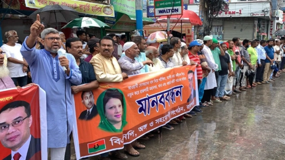 মানববন্ধনে বক্তারা বলেন, ‘দিনের বেলায় বিএনপি, আর রাতের আঁধারে আওয়ামী লীগ- এমন নেতারা বিএনপির নেতৃত্ব দিতে পারেন না। মহানগর বিএনপি ছাড়াও থানা ও ওয়ার্ড কমিটিতে রাখা হয়েছে আওয়ামী লীগ ঘনিষ্ঠ ব্যক্তিদের। বাদ পড়েছেন দলের প্রকৃত কর্মীরা।