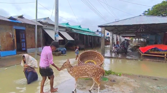 অস্বাভাবিক জোয়ারে রাস্তাঘাটসহ চারদিক প্লাবিত হয়েছে। তলিয়ে গেছে দ্বীপের বিস্তীর্ণ এলাকা। কোথাও দাঁড়ানোর সামান্য জায়গা নেই। তাই নিরুপায় হয়ে ভয়কে উপেক্ষা করে লোকালয়ে চলে এসেছে বনের হরিণ। অনেকে তার ছবি এবং ভিডিও করতে থাকে। তার মধ্যে একটি ভিডিও সামাজিক যোগাযোগমাধ্যম ফেসবুকে ভাইরাল হয়ে যায়।