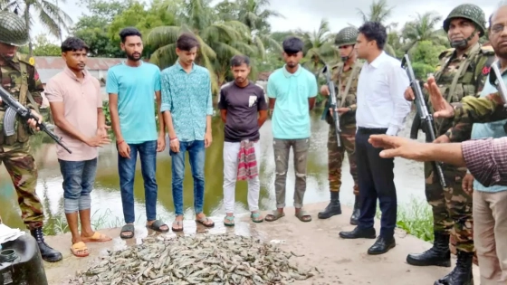 গ্রেপ্তারকৃতরা হলেন- সাতক্ষীরা তালা উপজেলার নগরঘাটা এলাকার অতুল বোদ্দের ছেলে সুব্রত, নারায়ণ বোদ্দের ছেলে রাকিশ বোদ্দ, গুরুপদ বোদ্দের ছেলে আকাশ বোদ্দ, নগরঘাটা নিমতলা এলাকার প্রদীব মন্ডলের ছেলে সবুজ মন্ডল, নগরঘাটা কাপাসডাঙ্গা এলাকার শ্যামলের ছেলে কুমারেশ মন্ডল ও একই এলাকার অমিত সরকার।