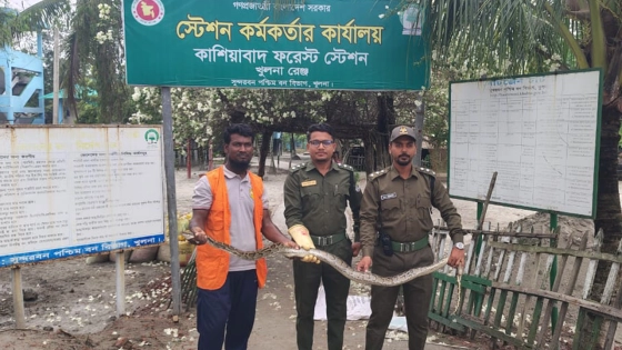 সুন্দরবনে জোয়ারের পানি বৃদ্ধি পাওয়ায় লোকালয়ে আসা একটি অজগর সাপ উদ্ধার করে বনের মধ্যে অবমুক্ত করা হয়েছে। সাপটি ৮ ফুট লম্বা ও ১০ কেজি ওজন ছিল।