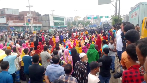 ঢাকার হেমায়েতপুরে বকেয়া বেতনের দাবিতে সড়ক অবরোধ করে বিক্ষোভ করেছেন বসুন্ধরা গার্মেন্টস লিমিটেডের শতশত শ্রমিক। প্রায় দুই ঘণ্টাব্যাপী চলা এ অবরোধে পুলিশ কাঁদানে গ্যাস ও জলকামান ব্যবহারের মাধ্যমে শ্রমিকদের সরিয়ে দেয়।