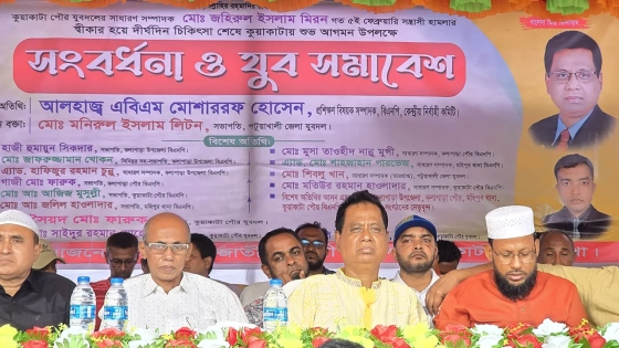 ওই সংবর্ধনা অনুষ্ঠানে সভাপতিত্ব করেন কুয়াকাটা পৌর যুবদলের সভাপতি সৈয়দ ফারুক মীর।