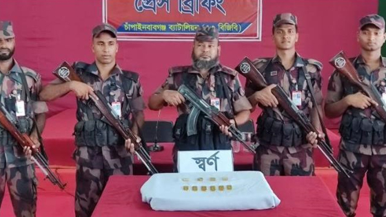 চাঁপাইনবাবগঞ্জের বাখেরআলী সীমান্ত এলাকা থেকে ১ কেজি ১৬৫ গ্রাম ওজনের ১০টি স্বর্ণের বার উদ্ধার করেছে বর্ডার গার্ড বাংলাদেশ (বিজিবি)।