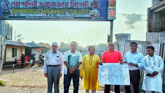 এ অবস্থায় উন্মুক্ত ওয়াকওয়ে বাণিজ্যিকভাবে ব্যবহারের প্রতিবাদে বৃহস্পতিবার (৩১ আগস্ট) বিকেলে ‘হাঁটার উন্মুক্ত পরিবেশ চাই’ প্ল্যা-কার্ড হাতে নিয়ে এককভাবে প্রতিবাদী অবস্থান নেন সলেট জেলা জজ আদালতের সাবেক পিপি মিসবাহ উদ্দিন সিরাজ।