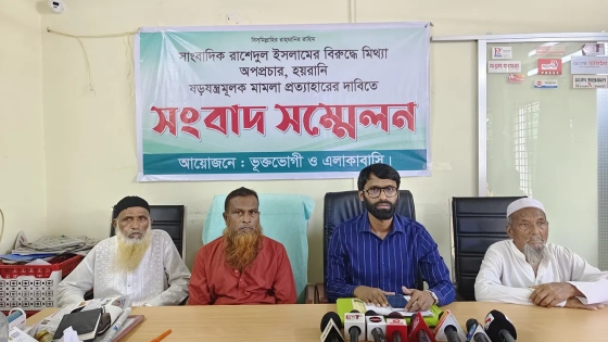 দৈনিক মানবকণ্ঠ ও এশিয়ান টিভির স্টাফ রিপোর্টার রাশেদুল ইসলামের বিরুদ্ধে মিথ্যা অপপ্রচার ও ষড়যন্ত্রমূলক মামলা প্রত্যাহারের দাবিতে সংবাদ সম্মেলন অনুষ্ঠিত হয়েছে। তার ক্রয়কৃত ৬১ দশমিক ৫০ শতাংশ জমি দখলের জন্য মিথ্যা মামলা দিয়ে হয়রানির অভিযোগ তোলা হয়েছে।