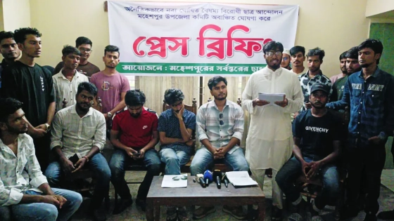 সংবাদ সম্মেলনে আরও উপস্থিত ছিলেন জুলাই যোদ্ধা জেলা কমিটির মুখ্য সংগঠক মেহেদী হাসান বাপ্পী, যুগ্ম আহ্বায়ক বিল্লাল হোসেন, বৈষম্যবিরোধী ছাত্র আন্দোলনের কর্মী মামুনুর রহমানসহ সংগঠনের বিভিন্ন পর্যায়ের নেতাকর্মীরা।