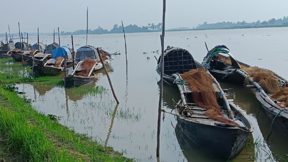 শনিবার (২ সেপ্টেম্বর) বিকেলে উপজেলার রনিয়া গ্রাম সংলগ্ন কালনী-কুশিয়ারা নদীর তীরে ঘুরতে গিয়ে দেখা যায়, প্রায় আর্ধশতাধিক জেলেদের সারিবদ্ধ নৌকা নদীর তীরে নোঙর করা।