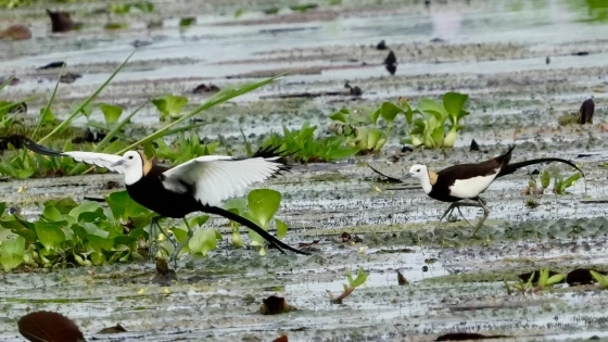 তিনি আরও বলেন, টানা আড়াই ঘণ্টা অপেক্ষার পর অবশেষে ক্যামেরায় ধরা পড়ে কাঙ্ক্ষিত জলময়ূর। একটি উড়ছিল, আরেকটি মাখনা পাতায় বসে ডাকছিল। এক জোড়া আবার খুনসুটিতে মত্ত ছিল। এরা যখন জলপদ্ম, মাখনা বা শালুক পাতায় ভর করে হেঁটে বেড়ায় সেই দৃশ্য ধারণ করা যায় সহজে।
