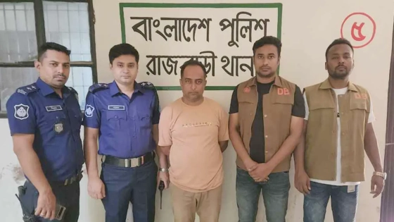 বৃহস্পতিবার (১০ জুলাই) সন্ধ্যায় রাজবাড়ী সদর থানা ও ডিবি পুলিশের যৌথ অভিযানে গাজীপুরের শফিপুর এলাকা থেকে তাকে গ্রেপ্তার করা হয়।