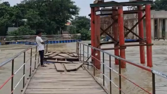 কুমিল্লার তিতাস উপজেলায় গোমতী নদীর ওপর নির্মাণাধীন পাকা সেতুর পাশে নির্মিত ৭৫ মিটার দীর্ঘ কাঠের সেতুটি পানির স্রোতে ভেঙে পড়েছে।