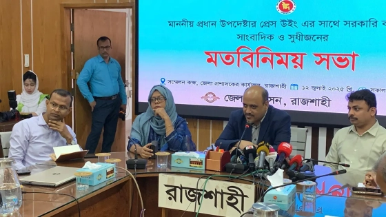 শনিবার (১২ জুলাই) বেলা ১১টায় রাজশাহী জেলা প্রশাসকের কার্যালয়ের সভাকক্ষে প্রধান উপদেষ্টার প্রেস উইংয়ের সঙ্গে সরকারি কর্মকর্তা, সাংবাদিক ও সুধীজনদের মতবিনিময় সভায় এসব কথা বলেন তিনি।