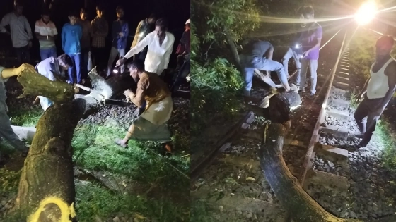 স্থানীয়রা জানান, গাছটি ছিল রেললাইন সংলগ্ন। বেশ কয়েকদিন ধরে প্রচুর বৃষ্টি হওয়ায় কারণে গাছটি উপড়ে পড়ে। পরে রেলওয়ে পুলিশ ও স্থানীয়দের সহযোগিতায় গাছটি কেটে রেললাইন থেকে সরানো হয়।