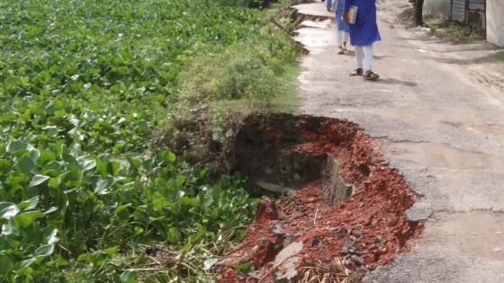 কুমিল্লার মনোহরগঞ্জে খাল-পুকুরপাড়ের সড়ক ধসে পড়ছে। বারবার মেরামত করেও সড়কগুলোর ভাঙন ঠেকানো যাচ্ছে না। এসব সড়কের অধিকাংশই মৎস্য খামারকেন্দ্রিক। এতে যান চলাচলে বিঘ্ন ঘটছে। ঘটছে দুর্ঘটনাও।