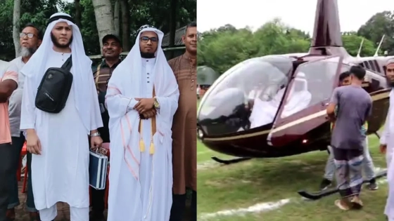 রাজবাড়ীতে ইমামতির টাকা জমিয়ে হেলিকপ্টারে চড়ে রাজকীয়ভাবে বিয়ে করলেন হাফেজ রুহুল আমিন মাদানী। এমন বিয়ের সংবাদ শুনে ভিড় করেন উৎসুক জনতা।