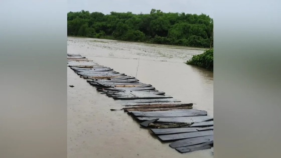 হবিগঞ্জের চুনারুঘাট উপজেলার মিরাশী-গরমছড়ি সড়কে ছড়ার ওপর নির্মিত কাঠের সাঁকোটি পাহাড়ি ঢলের পানিতে ক্ষতিগ্রস্ত হয়েছে। সাঁকোটি ভেসে যেতে দেখলে স্থানীয়রা সেটিকে একটি গাছের সঙ্গে বেঁধে রাখেন।