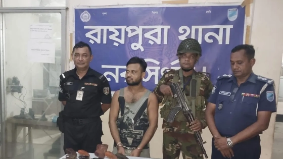 মঙ্গলবার (২২ জুলাই) দুপুরে রায়পুরা থানায় এক সংবাদ সম্মেলনে নরসিংদীর পুলিশ সুপার মো. আব্দুল হান্নান এ তথ্য নিশ্চিত করেছেন। এর আগে সোমবার (২১ জুলাই) বিকেলে অভিযান চালিয়ে তাকে গ্রেপ্তার করা হয়।