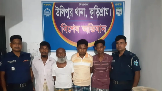 এ বিষয়ে উলিপুর থানার পুলিশ পরিদর্শক (তদন্ত) নাজমুস সাকিব সজিব ঘটনার সত্যতা নিশ্চিত করে বলেন, মালামালসহ চারজনকে আটক করে থানায় নিয়ে আসা হয়েছে। তদন্ত করে আইনগত ব্যবস্থা নেওয়া হবে।