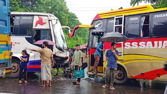 প্রত্যক্ষদর্শীরা জানান, বিজিসি ট্রাস্ট ইউনিভার্সিটির শিক্ষার্থীবাহী বাসটি মোড় নেওয়ার সময় নিয়ন্ত্রণ হারিয়ে চট্টগ্রামগামী একটি হানিফ বাসের সঙ্গে সংঘর্ষ হয়। এতে দুই বাসের অন্তত ২৮ জন যাত্রী আহত হন।