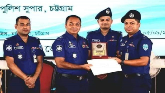 মঙ্গলবার (৫ সেপ্টেম্বর) বিকেলে চট্টগ্রাম জেলা পুলিশ লাইনসে আয়োজিত মাসিক কল্যাণ ও আইনশৃঙ্খলা মিটিংয়ে তার হাতে সম্মাননা সার্টিফিকেট তুলে জেলা পুলিশ সুপার এস এম শফিউল্লাহ।